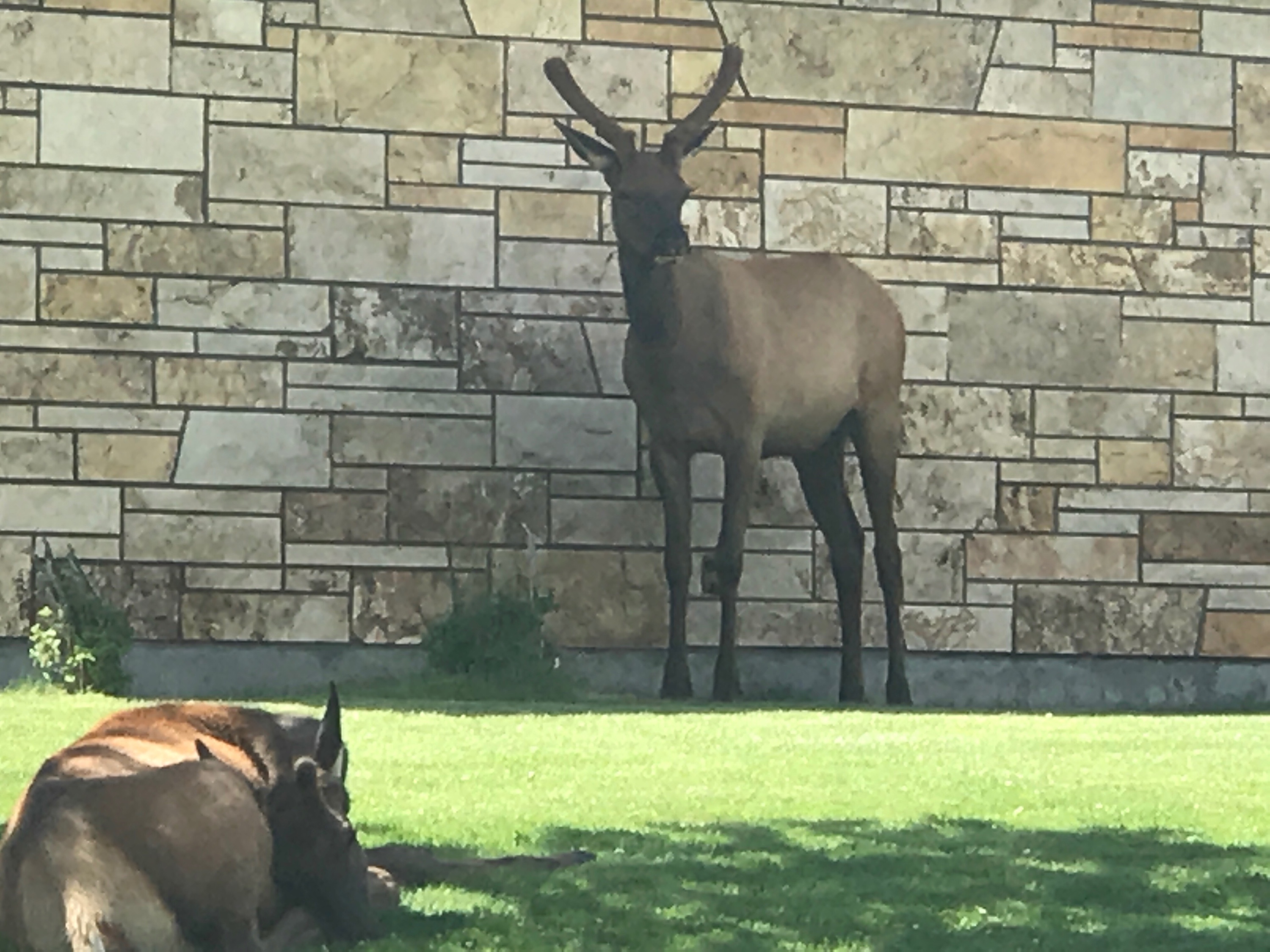 山にいるとオオカミとかクマに狙われるので敢えて人間のそばに来てのんびりリラックスしています。
