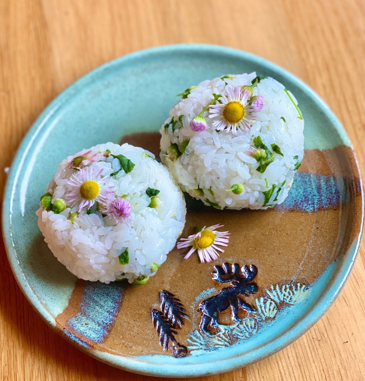 その中でも美味しい!と思ったのが「ハルジオンのおむすび」これは花と葉っぱを10秒ほど湯掻いておむすびに混ぜ込みます。