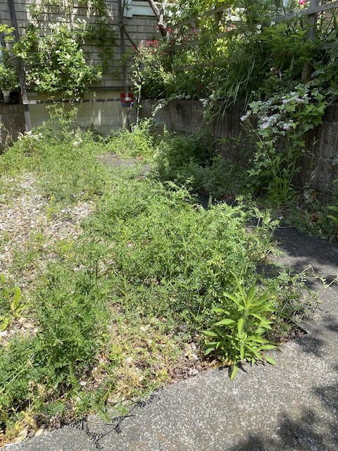 なのでここの雑草は抜かないでおこうと思いました(これ、田舎の土地と違ってかなり勇気のいる決断なんです)