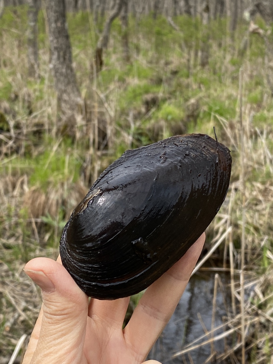 これは湿原の川に棲むカラス貝。初めて見ました。巨大です。