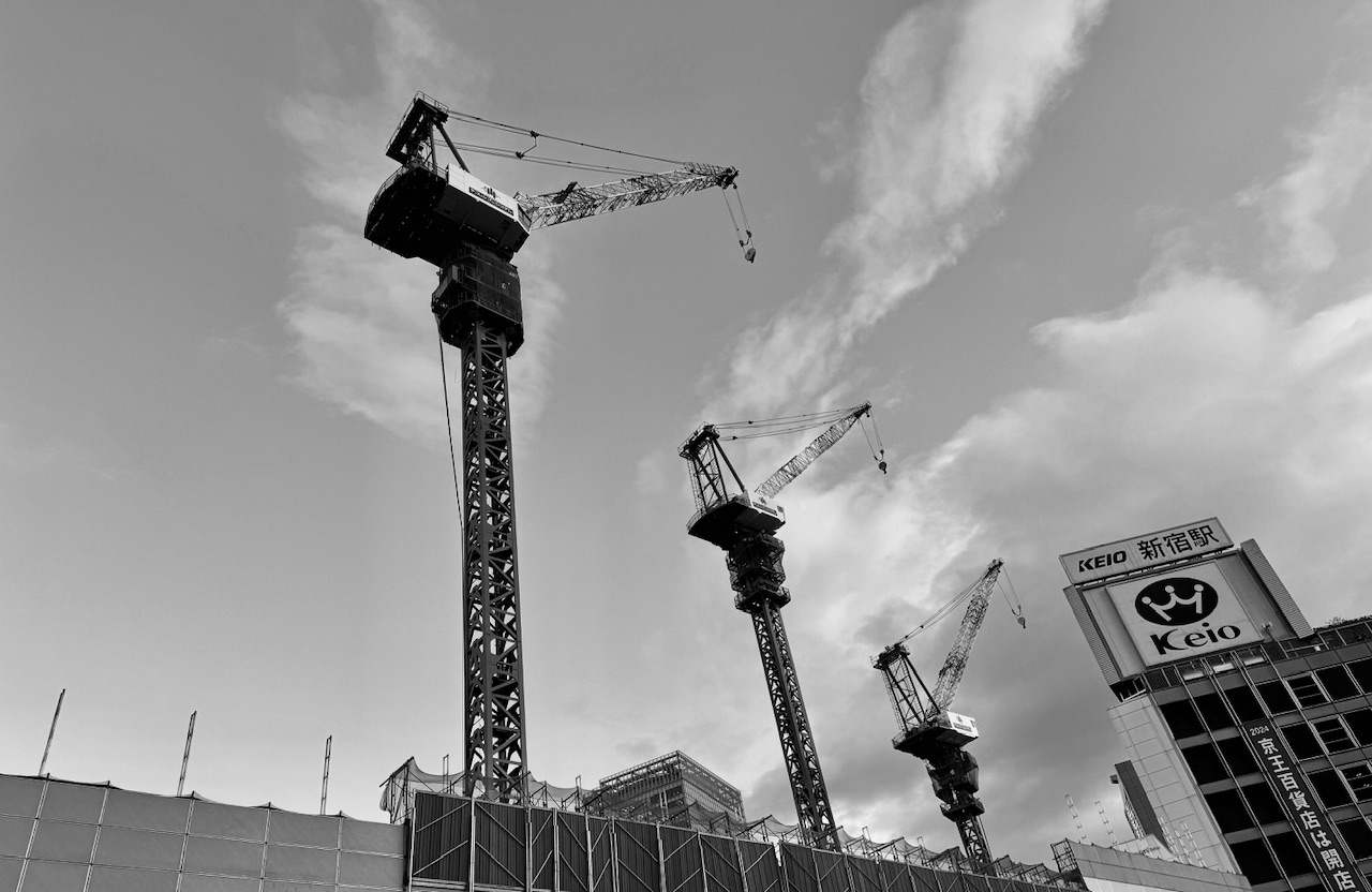 新宿駅は今、建て替え工事中で12階まであった駅ビルがすっかり無くなり青空が見えていました。