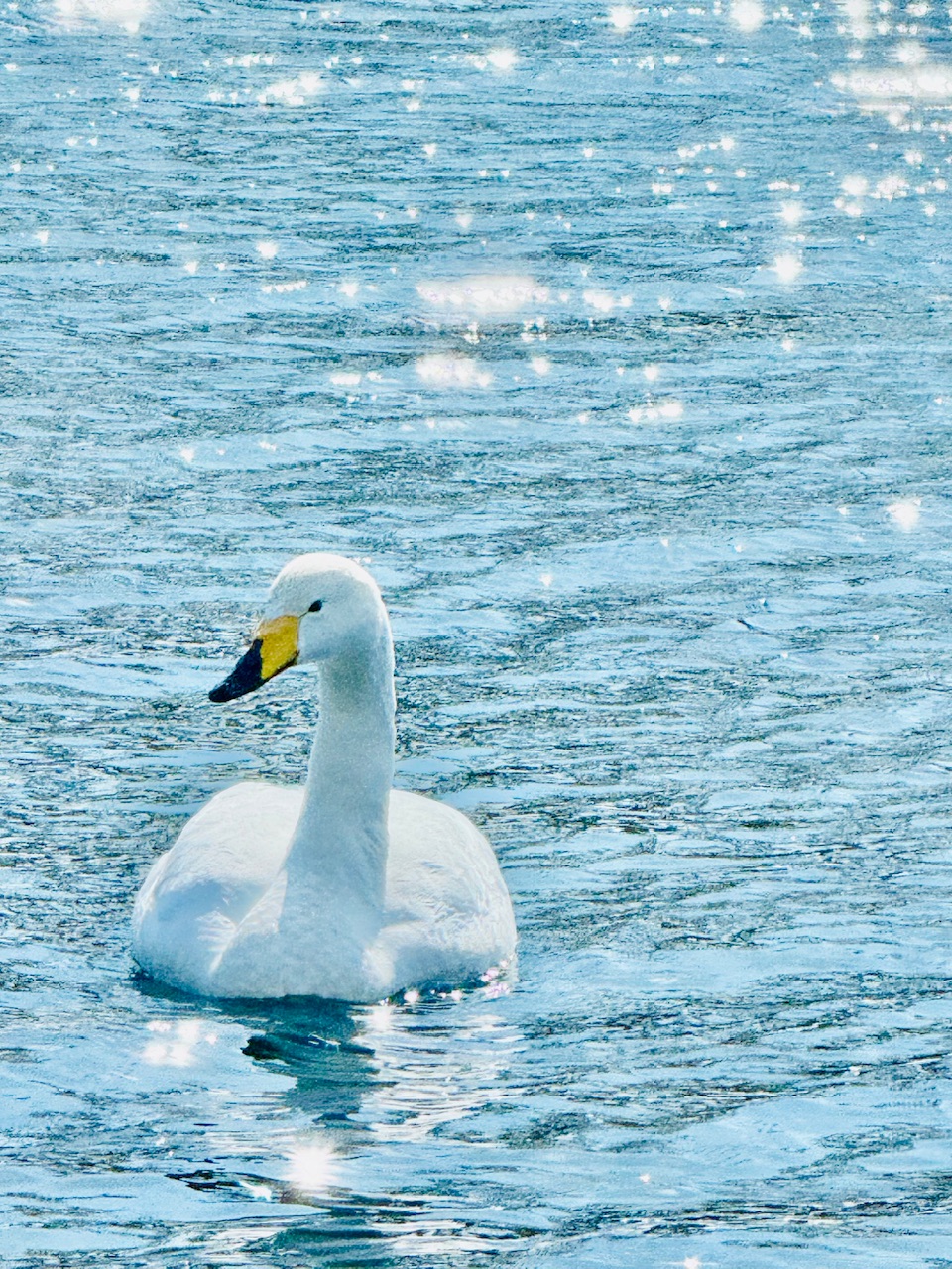 光の中で白鳥たちと交流しました。私が彼らを美しいと思うとそれが彼らに伝わり、私が喜ぶと彼らも喜ぶ。
