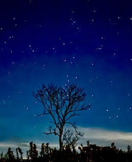 彗星を見ようと待ち構えていて、そちらにばかり気を取られていたのですが、ふと振り返ると後ろに星々がキラキラと輝いていました。