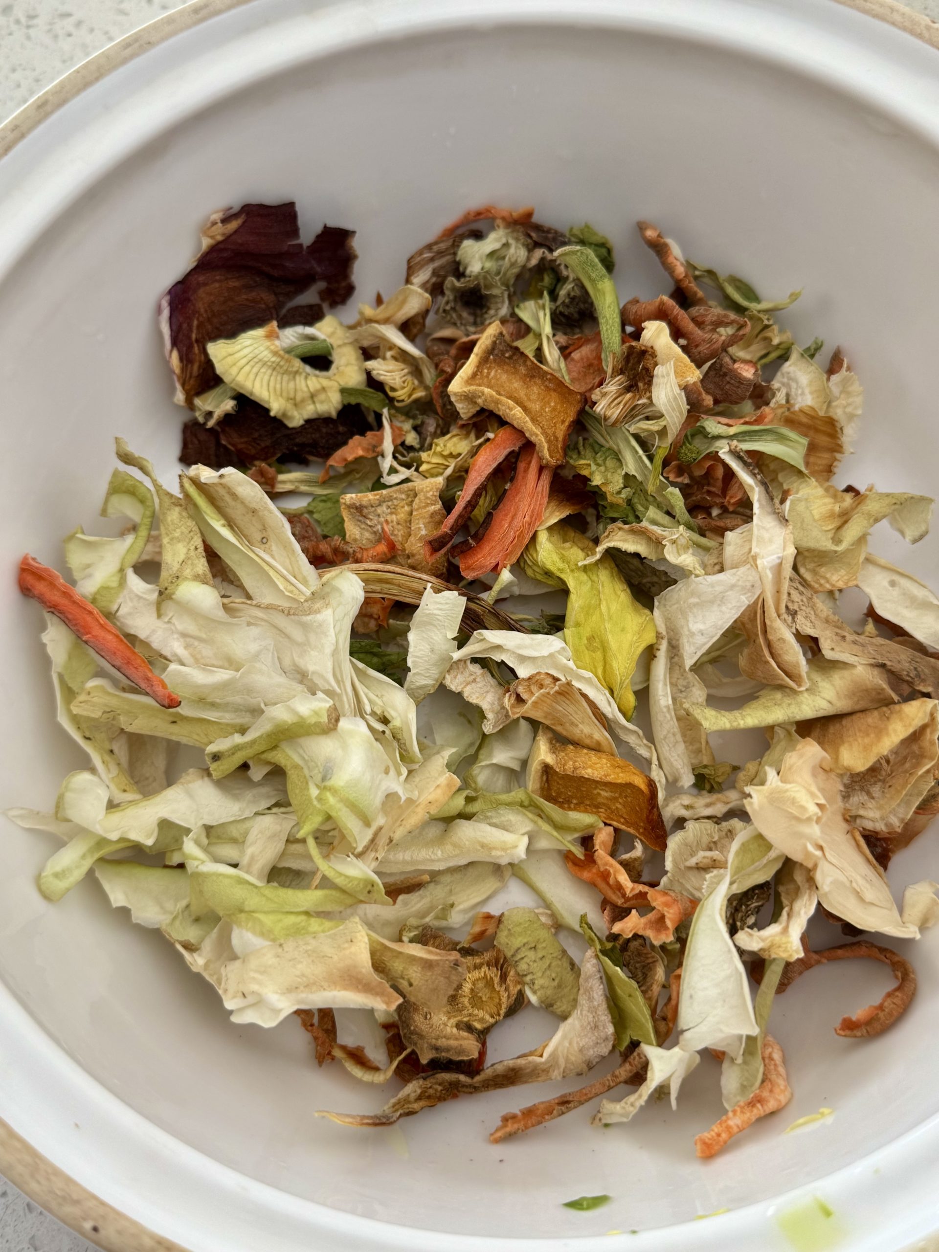 それと同じです。それらの野菜クズを乾燥させて使う時は水につけておいて火にかけるとすごい美味しいスープになります。