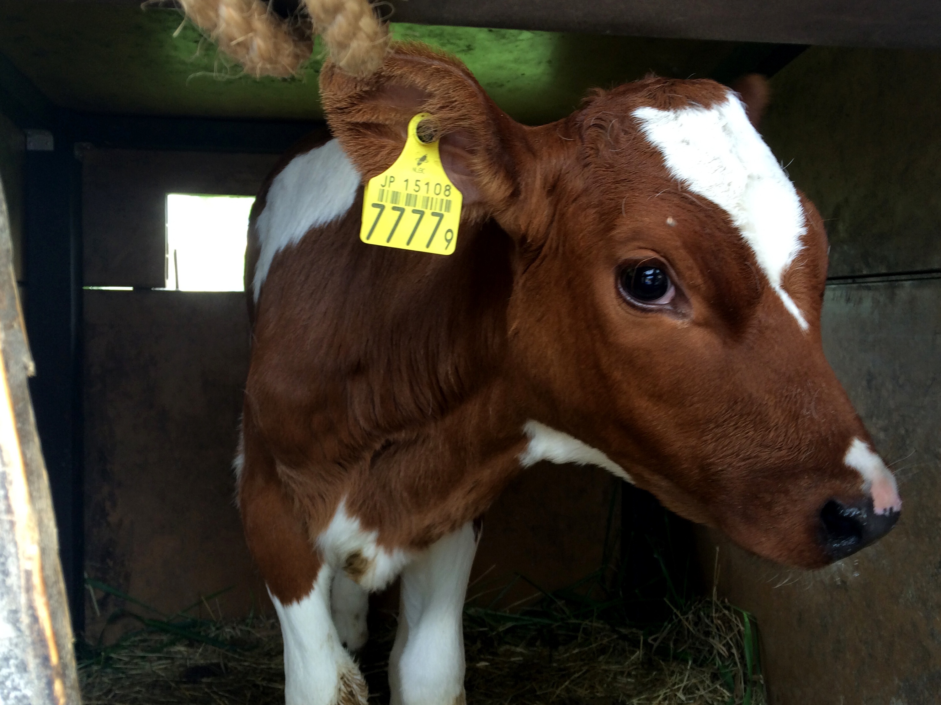 牛の赤ちゃんを見せてもらったら耳についている番号が「7777」でした。