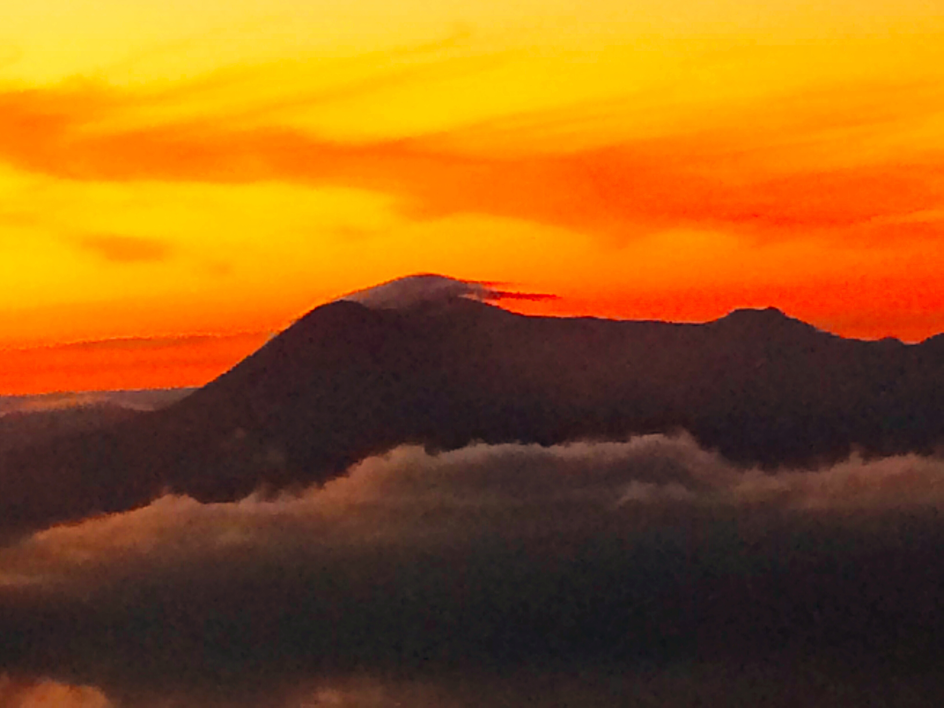 その時、窓からまさかの夕陽に照らされた雌阿寒岳が!!