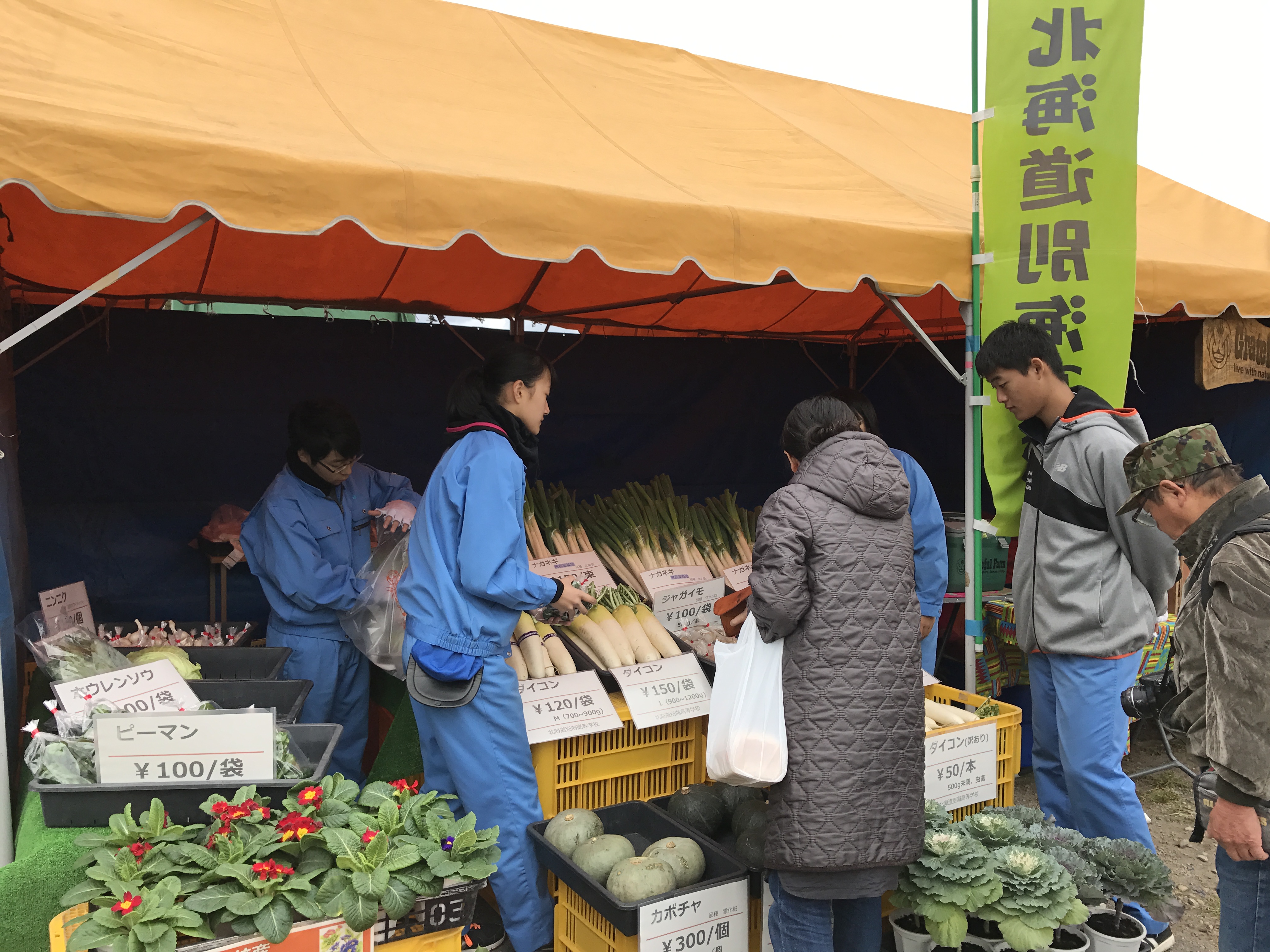 別海農業高校も農作物を出していて。純朴そうな高校生たちの目の輝きを見てほっこりしました。もちろんお野菜も買いました。