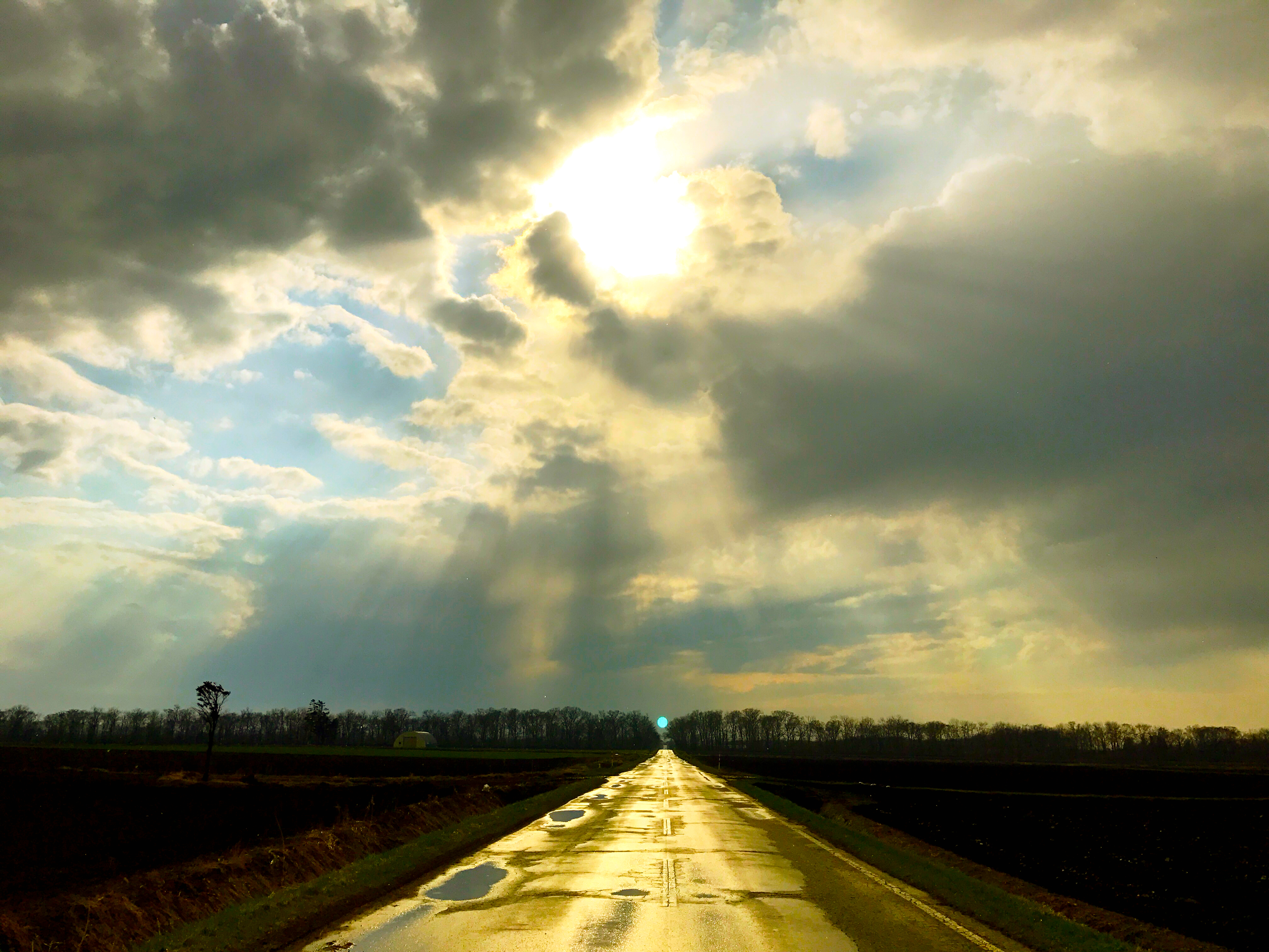 そしてしばらく(1時間くらい)行くと、ここも小雨が降って暗い空だったのですが山を登って行き、ふと見下ろすと、、、、
