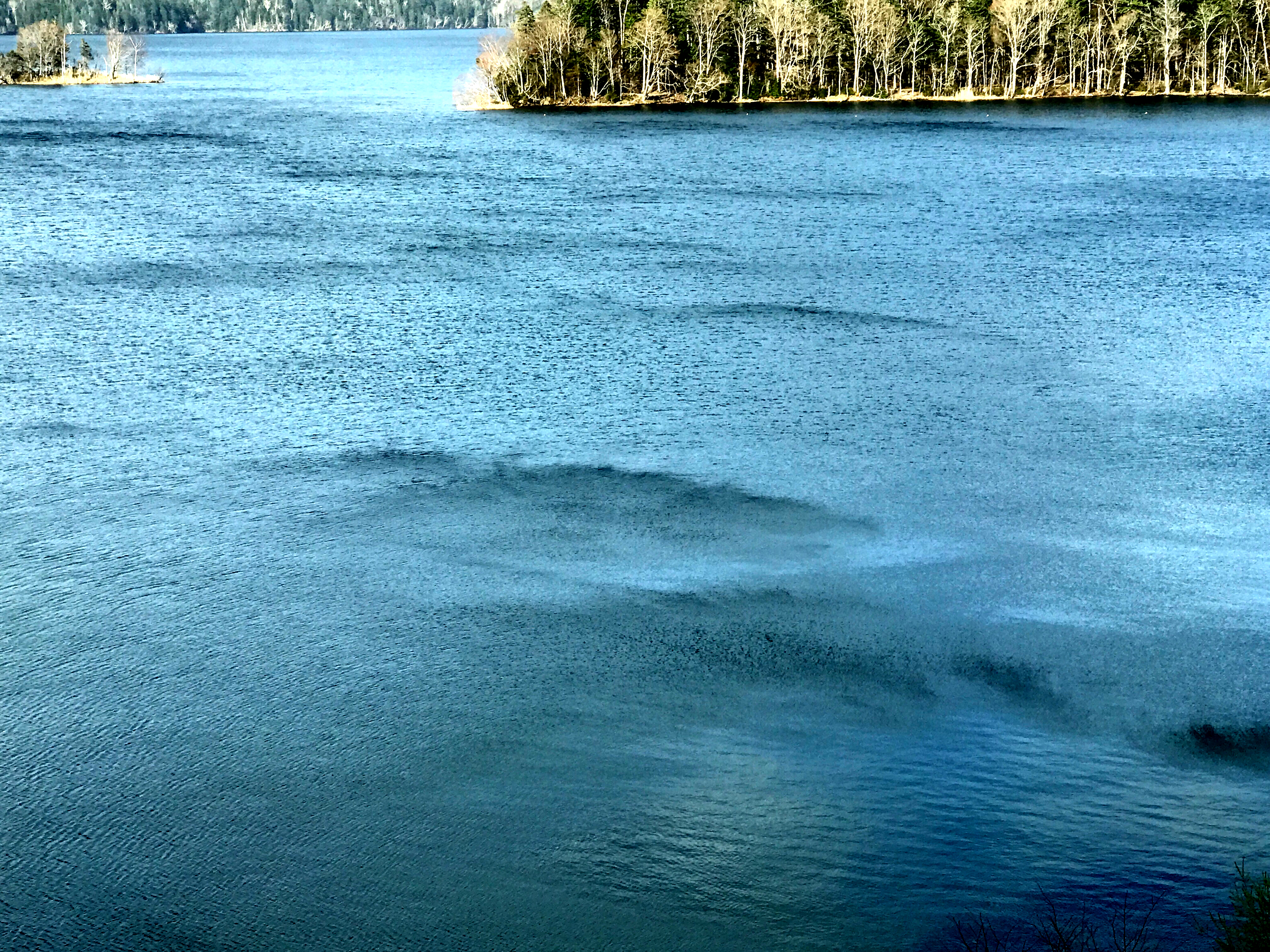 ほら、、、湖の上を渡る時、、、。